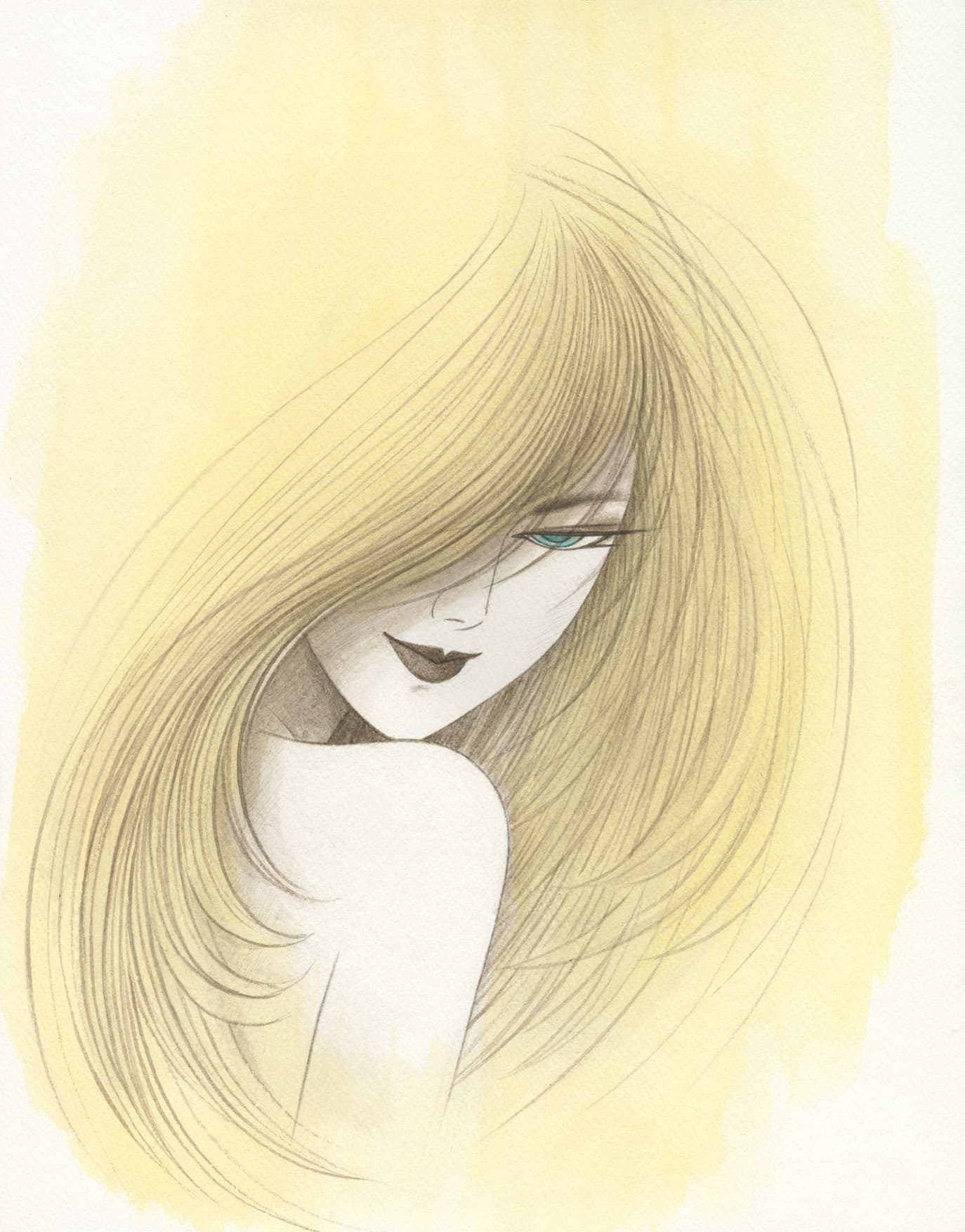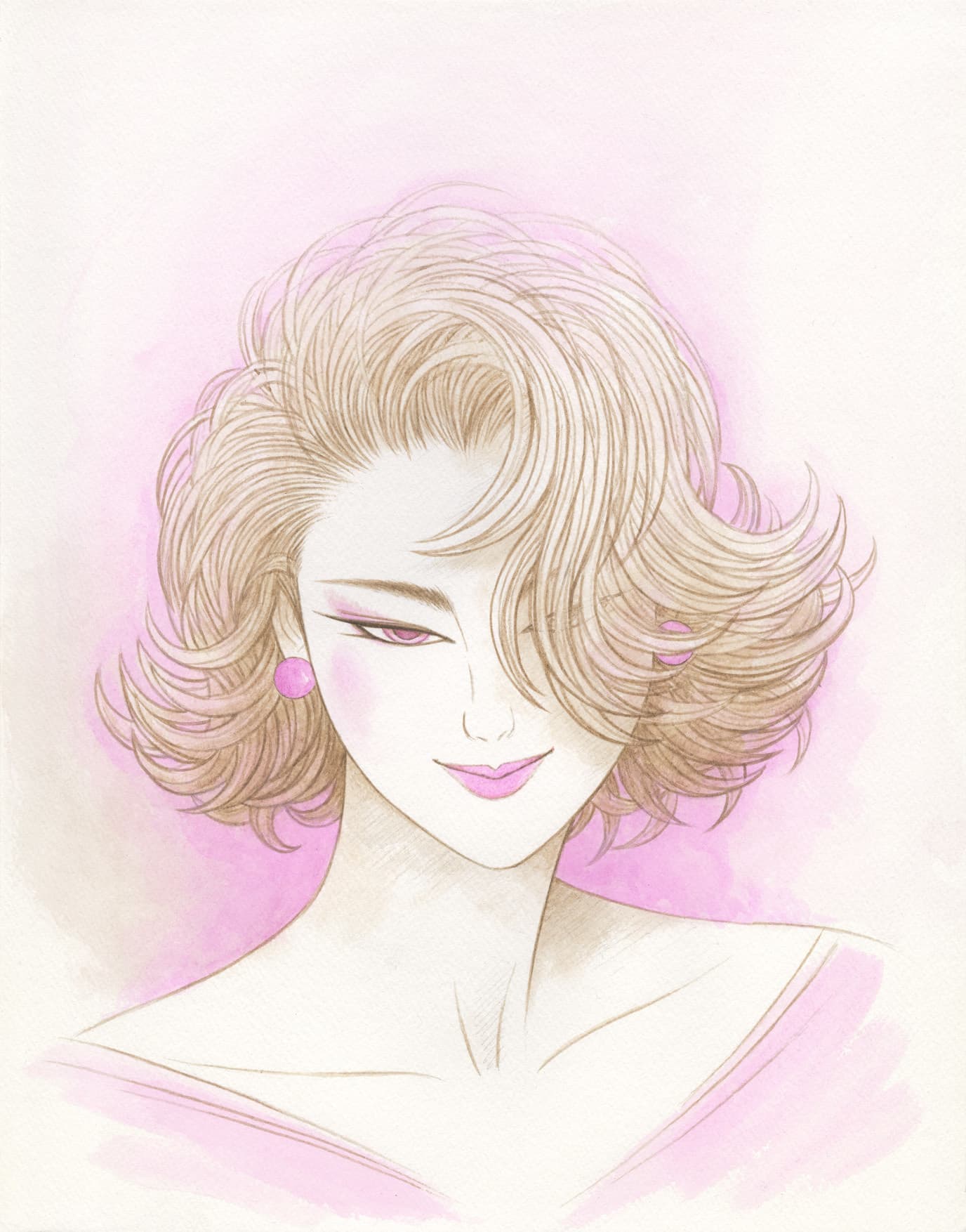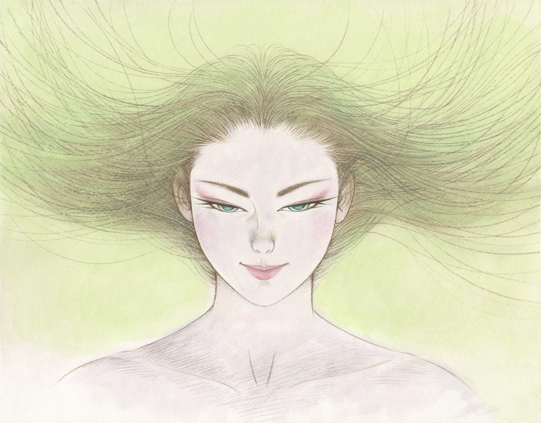 私が現在のような美人画を描くようになったのは、もともと女性を描くのが好きであったのと、もう一つは、その頃まで描いていた、スーパーリアルな西洋的表現の絵を私自身が描き続けていく事の意味を失いつつあったからだ。つまり、自分の中の感性や美意識が、日本的な物へ向き始めた事にあったと思っている。