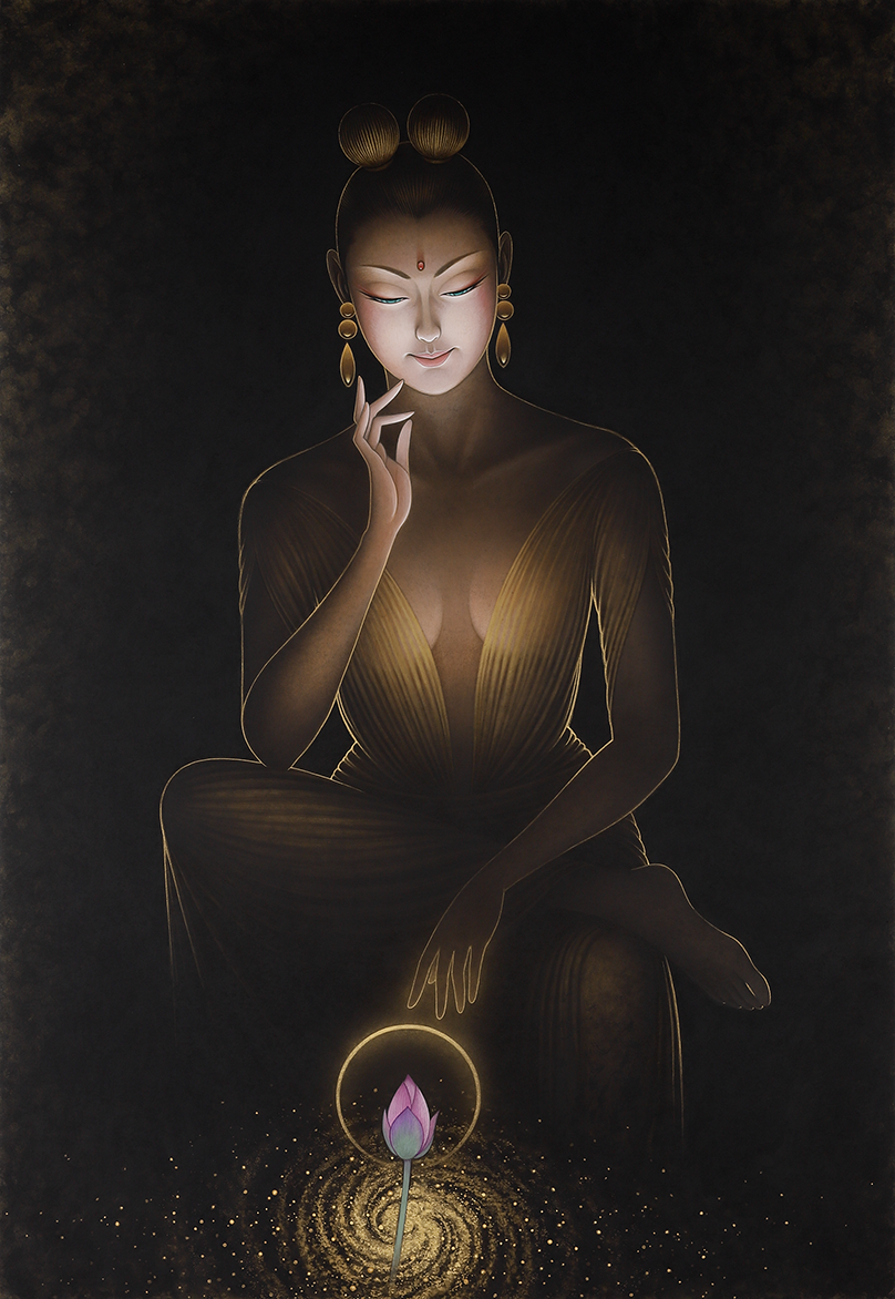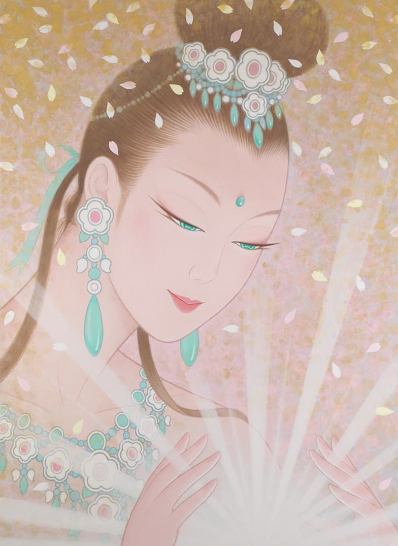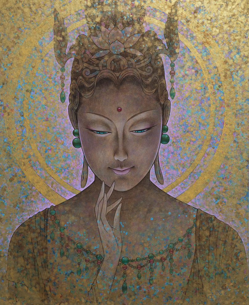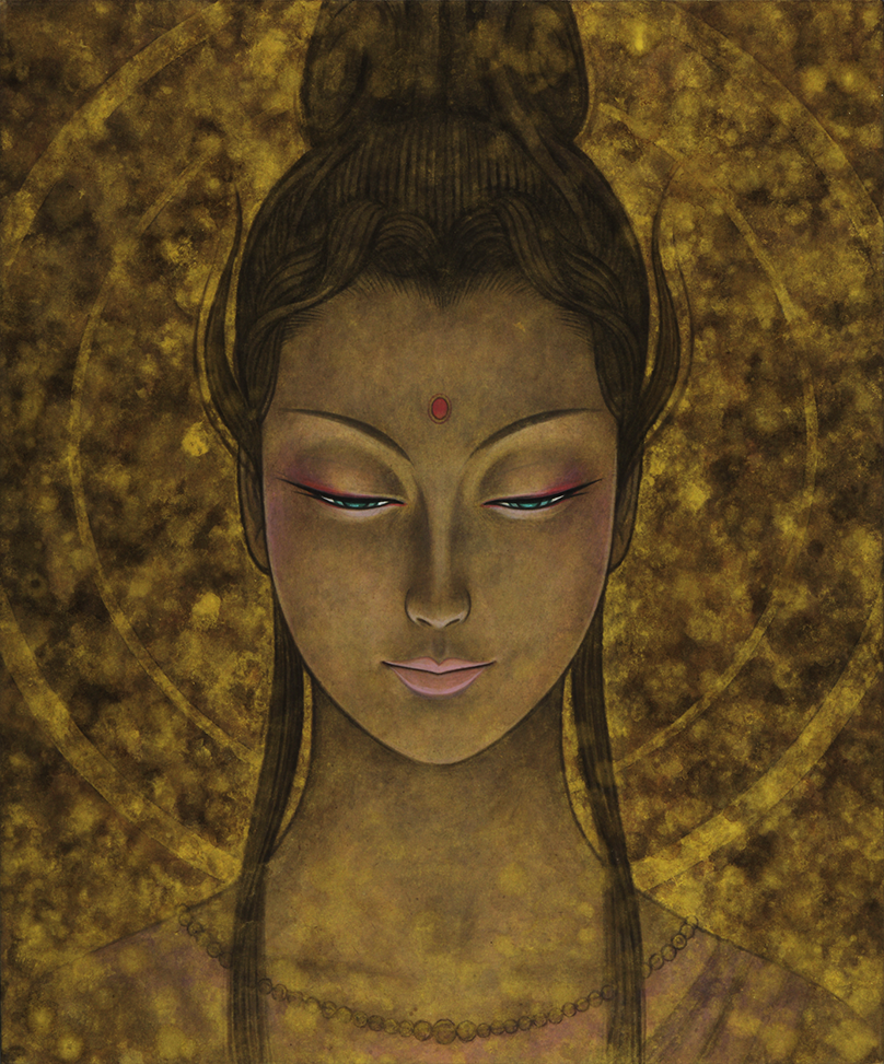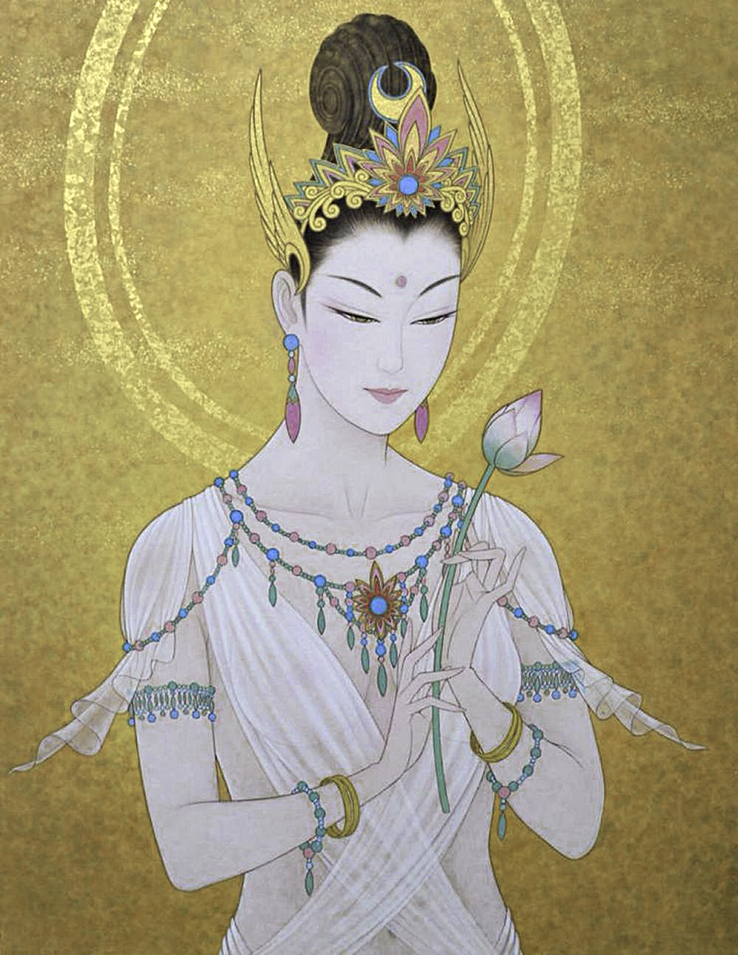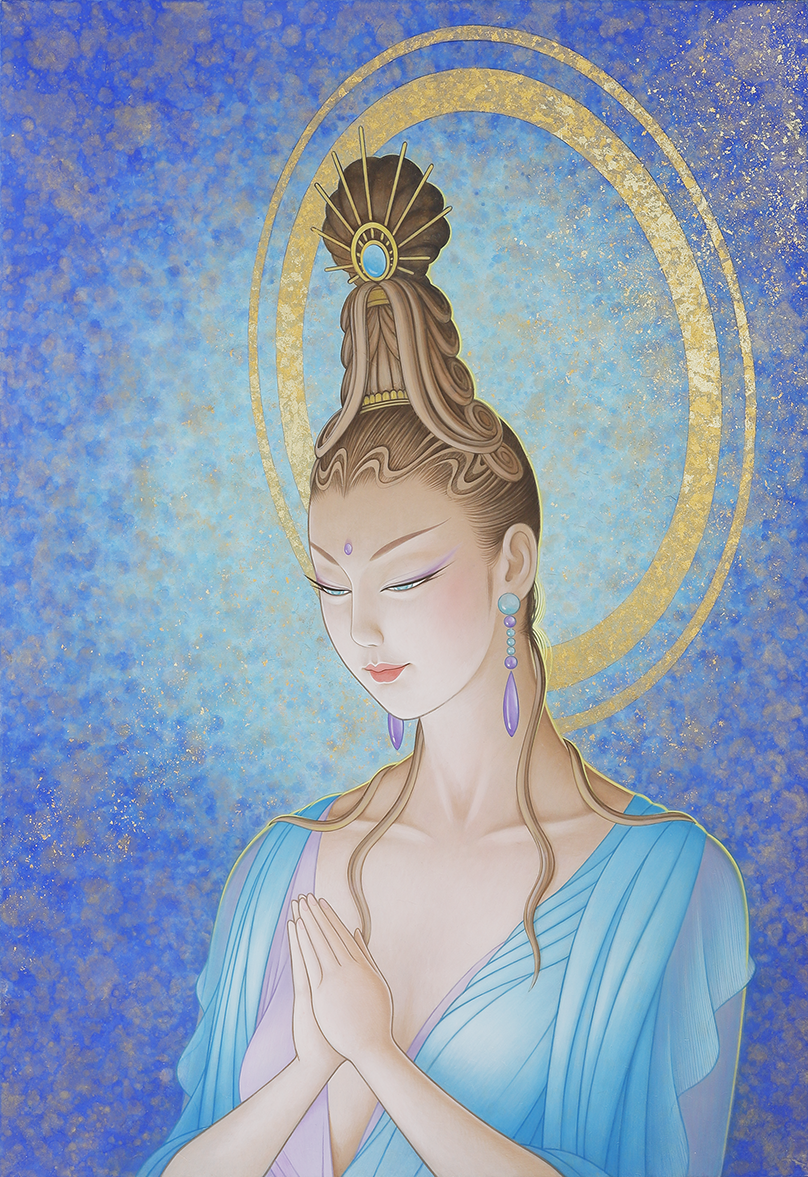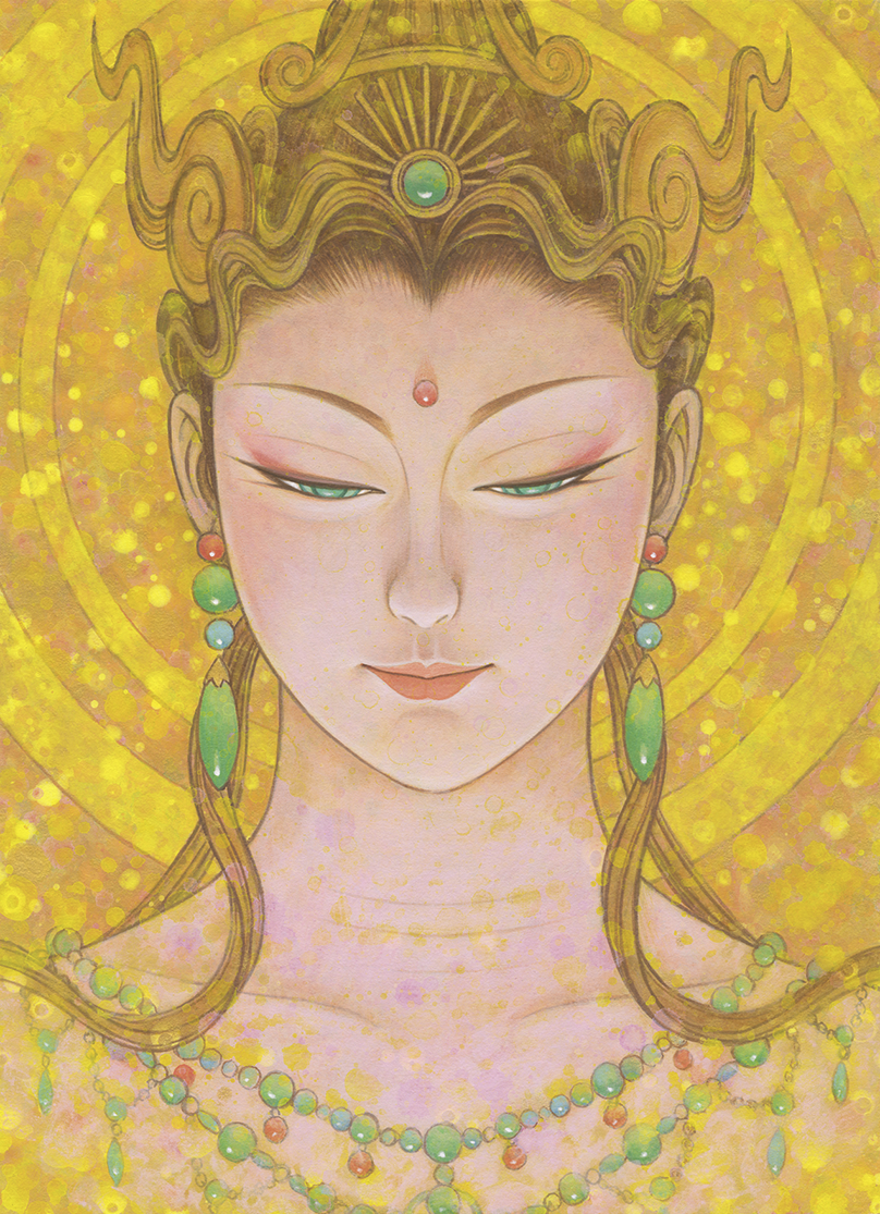 私は、2009年から仏画を描き始めた。美人画の深いところ、その向こう側を追求して行くと仏画や美神にたどり着く。そのことは自然な成り行きというか必然だったような気がしてる。