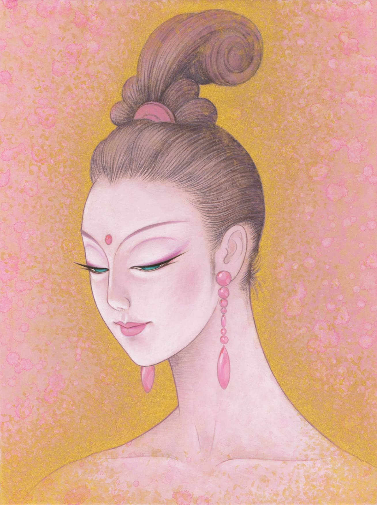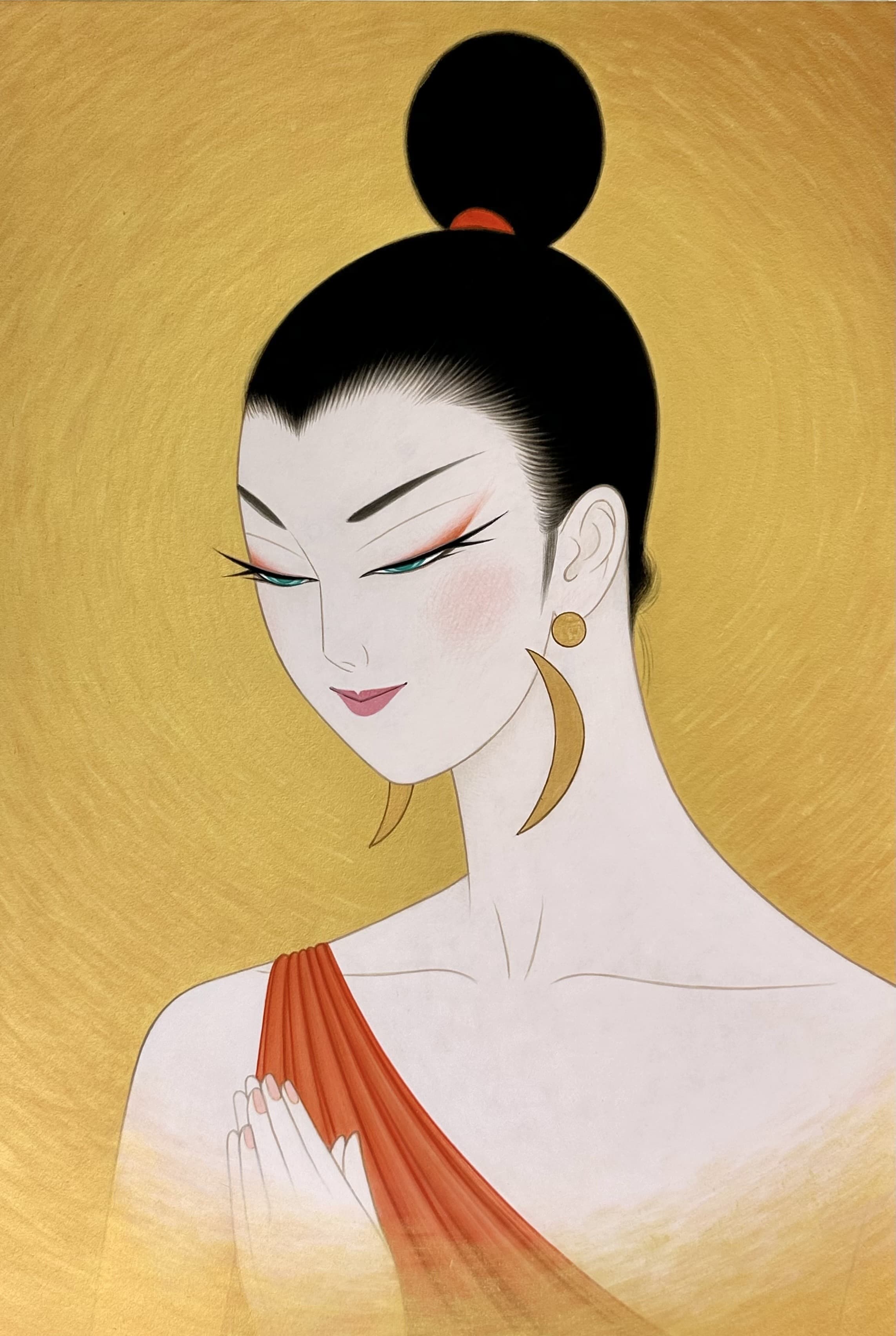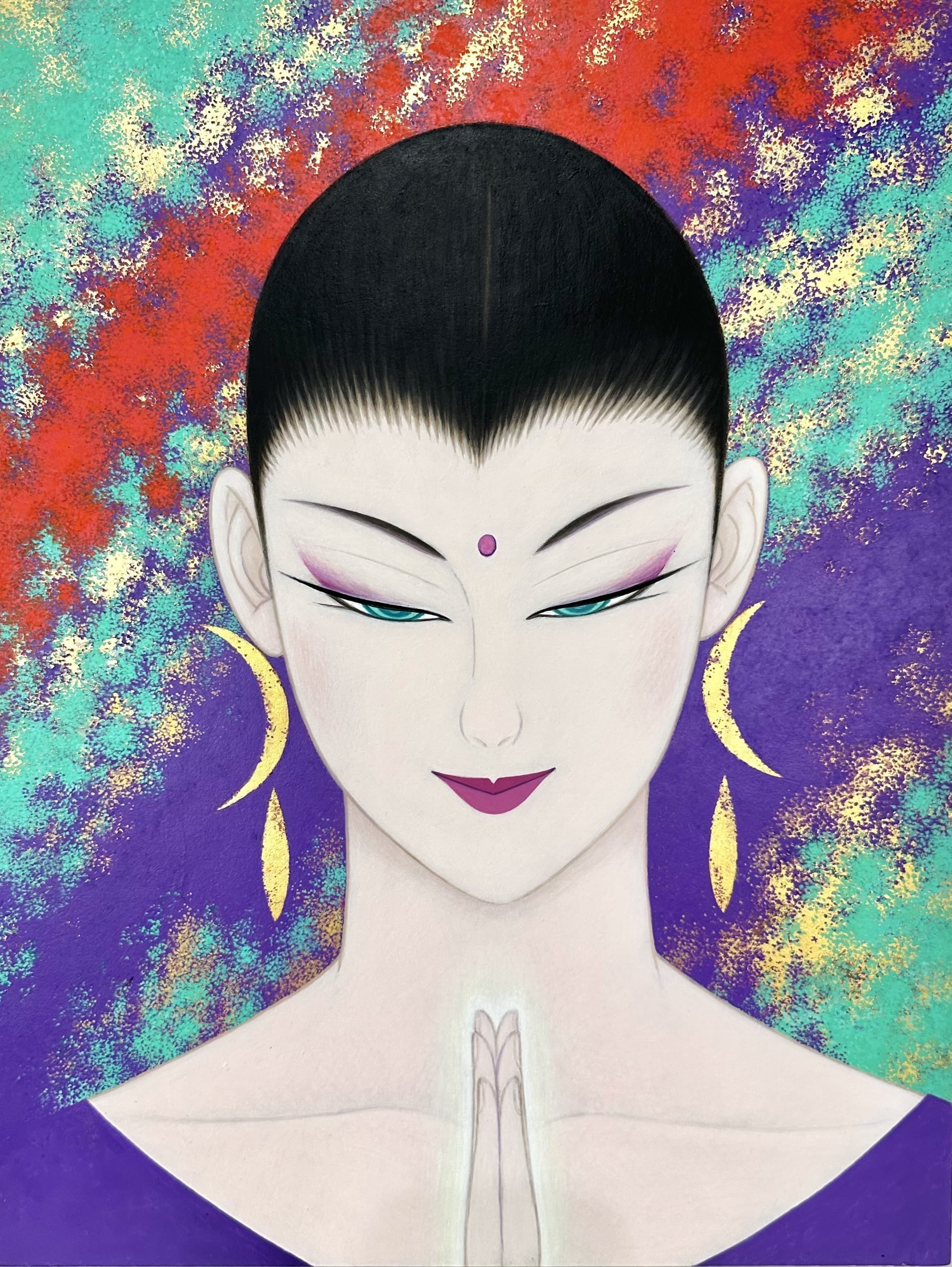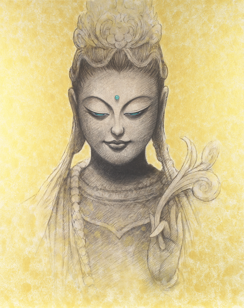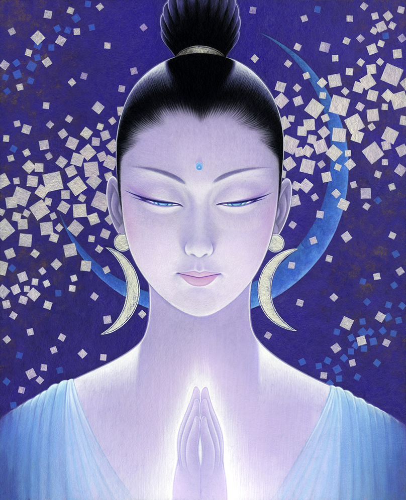 私は、2009年から仏画を描き始めた。美人画の深いところ、その向こう側を追求して行くと仏画や美神にたどり着く。そのことは自然な成り行きというか必然だったような気がしてる。