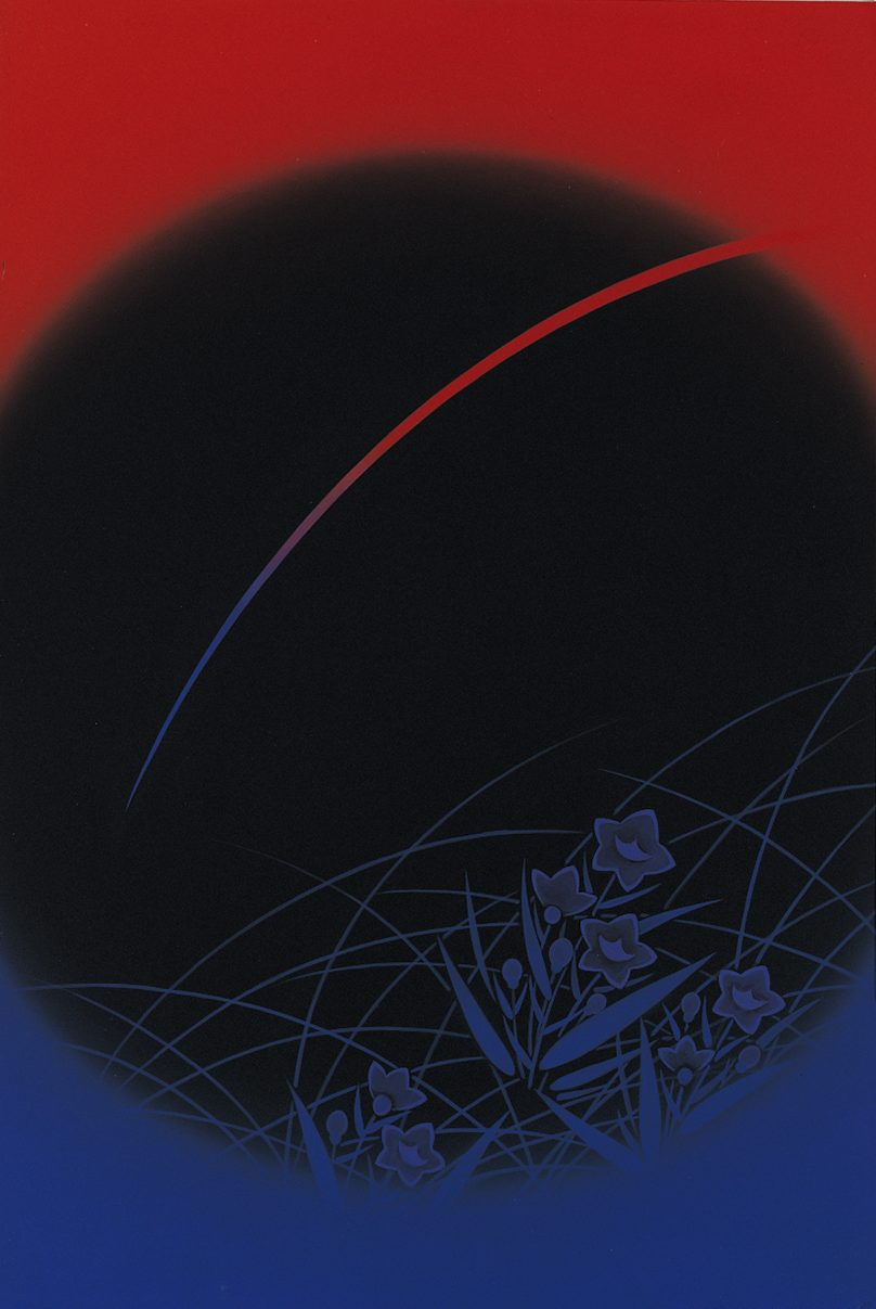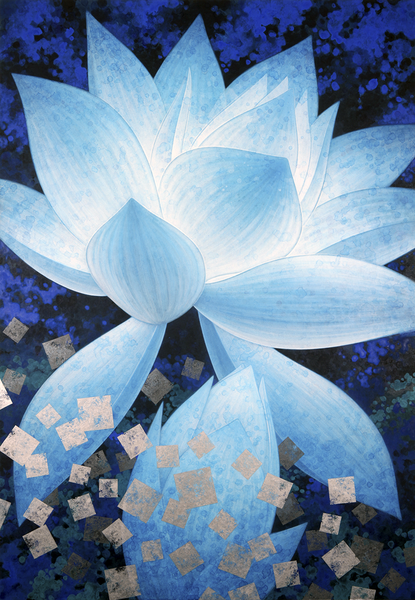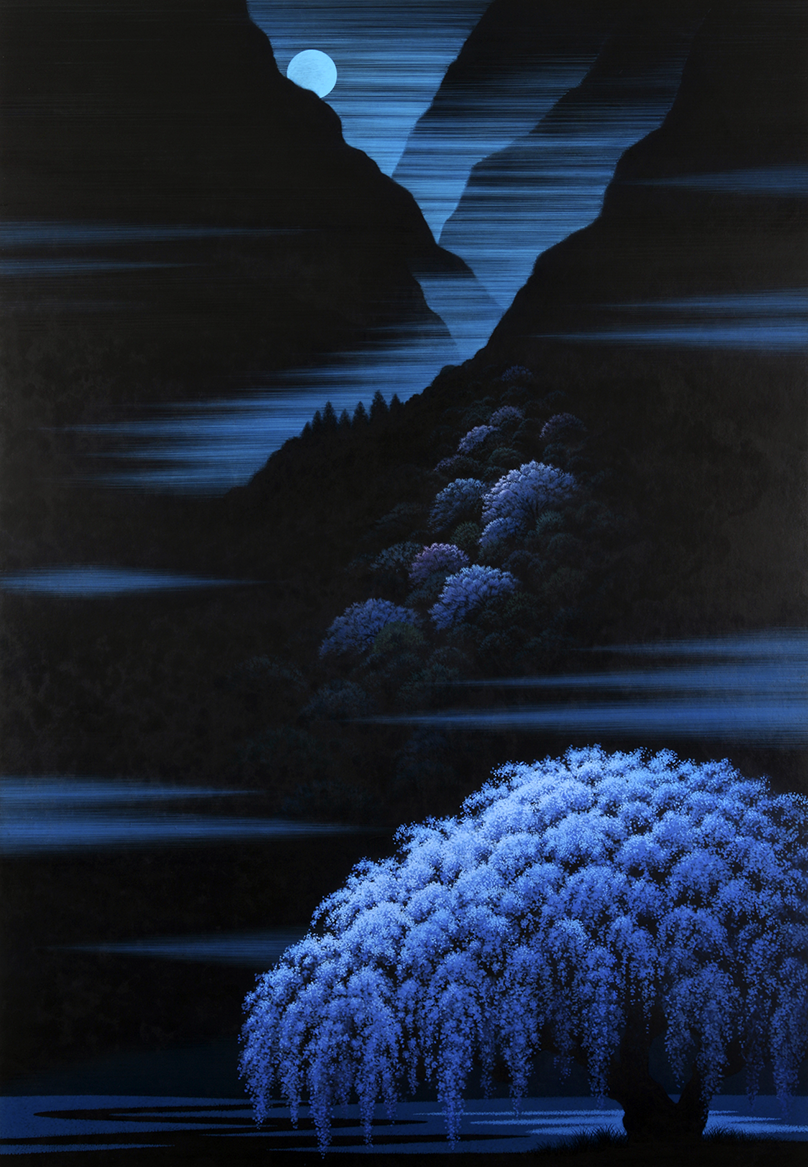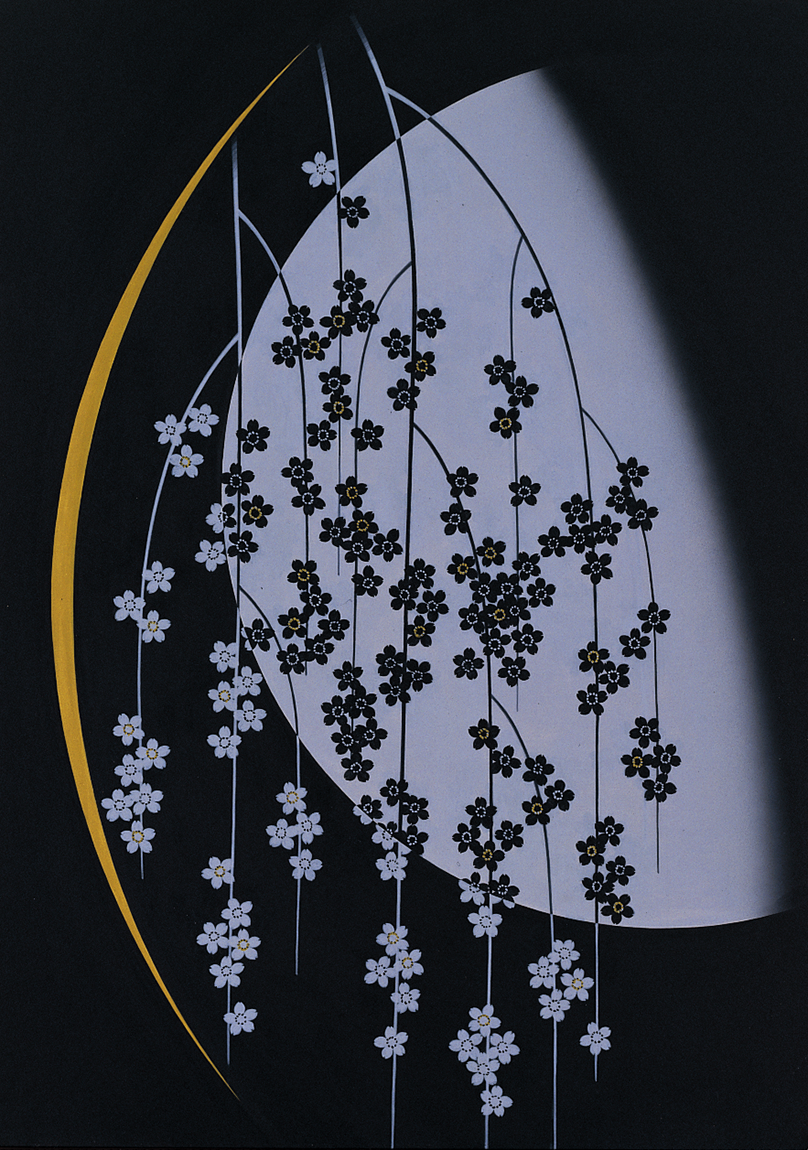 この作品「琳派シリーズ」は、私の美人画の原点にもなっている琳派を私なりのスタイルで描いてみた。多くの日本の美術からも影響を受けてはいるのだが、中でも琳派のデザイン性、装飾性、自由さにはより深い影響を受けている。もともと、琳派と呼ばれる絵師達には師弟、徒弟制度というものはなく、先人達へのリスペクトにより、引き継がれてきた様式だと言われている。